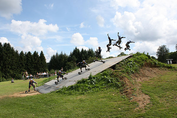 Mountainboarden is fun, en je hoeft er helemaal niet gek voor te zijn (al kan ‘een beetje gek zijn ‘ absoluut geen kwaad)… Iederéén kan het leren en mits enige creativiteit biedt elk hellend terrein een nieuwe uitdaging: bossen, mountainbike en bmx tracks, down-hill asfalt- of zandwegen en zelfs skateparken behoren tot de mogelijkheden, maar de natuurlijke habitat van de mountainboarder blijft toch een hellend grasveld.