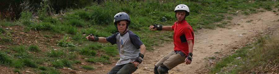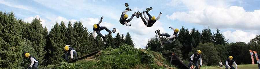 Mountainboarden is fun, en je hoeft er helemaal niet gek voor te zijn (al kan ‘een beetje gek zijn ‘ absoluut geen kwaad)… Iederéén kan het leren en mits enige creativiteit biedt elk hellend terrein een nieuwe uitdaging: bossen, mountainbike en bmx tracks, down-hill asfalt- of zandwegen en zelfs skateparken behoren tot de mogelijkheden, maar de natuurlijke habitat van de mountainboarder blijft toch een hellend grasveld.